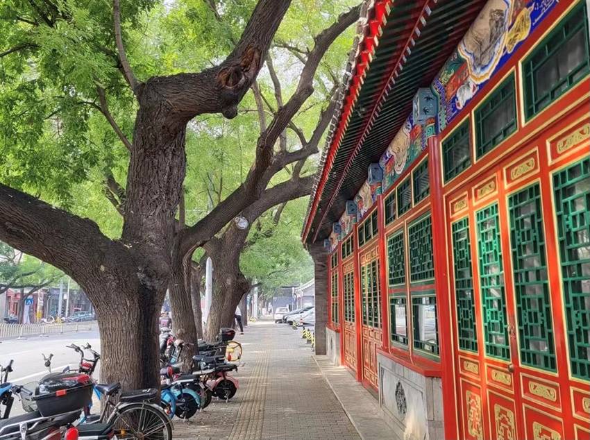离开恢宏的宫殿,拐进胡同,世界立刻安静下来。灰砖四合院静立,老槐树下棋声朗朗;小孩骑车嬉闹,阿姨高声叫卖:“热豆浆、油条,新鲜煎饼!”香味随风弥散,勾引路人的味蕾。门前猫咪伸懒腰,阳光斜照红色门楣,光影温暖而宁静。三轮车缓缓驶过,铃声叮叮作响,包裹轻轻摇晃,仿佛为胡同奏乐。老人慢练功夫,孩子追逐嬉戏,笑声与吆喝声交织成生活的画卷。走在胡同深处,我感到一种特别的亲切:这里有北京最真实的生活,也让我心底生出温暖与安宁。