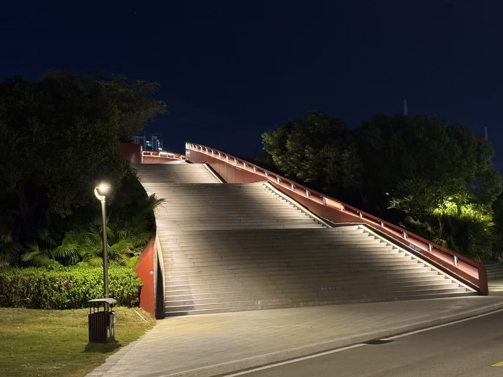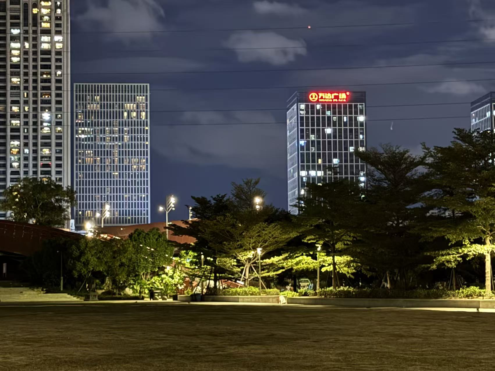 运动区最是热闹。篮球场的灯光明亮,年轻人奔跑跳跃、呐喊欢笑;跑道上,夜跑的人戴着荧光臂环,在黑夜中闪烁如流星。更远处的草坪上,孩子们放着发光风筝,老人打着太极,几位大妈伴着音乐跳起广场舞。泉州的夜,不吵闹,却活力十足。