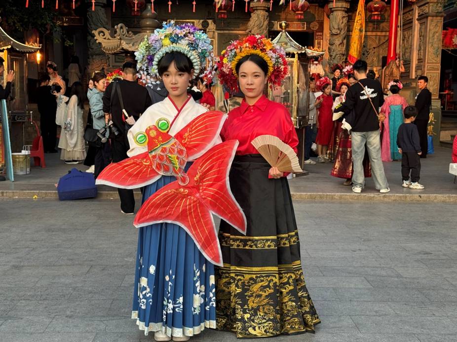 行走在蛶埔老街,最吸引目光的,莫过于头戴簪花围的蛶埔女。五彩斑斓的鲜花围绕发髻,与素雅的传统服饰形成鲜明对比,在古朴的街巷中显得格外生动。