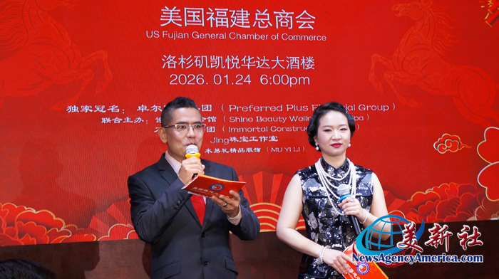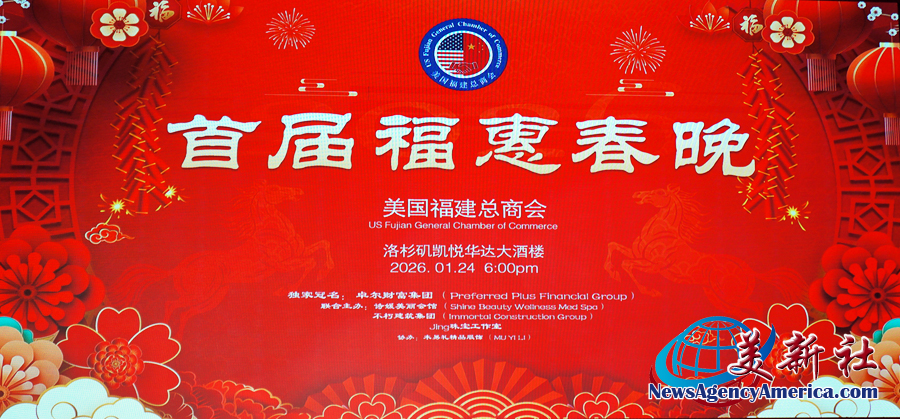 【美新社洛杉矶訊】2026年1月24日晚間,楊麗桢會長領銜的美國福建總商會于哈崗凱悅華達大酒樓隆重舉辦首屆福惠春晚。