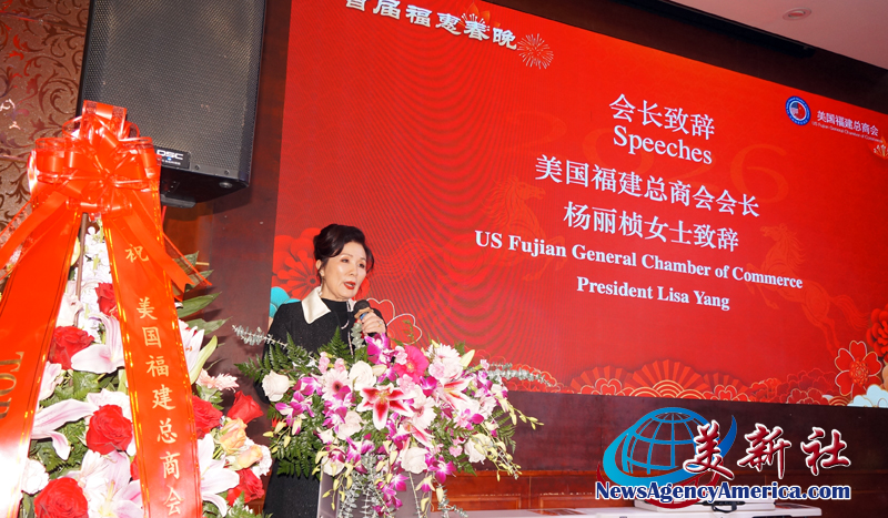 美國福建總商會楊麗桢會長首先致辭,向長期關心和支持美國福建總商會發展的各位僑領、社會賢達,和辛勤付出的全體理事和會員,送上最誠摯的歡迎和感謝和最美好的祝福。