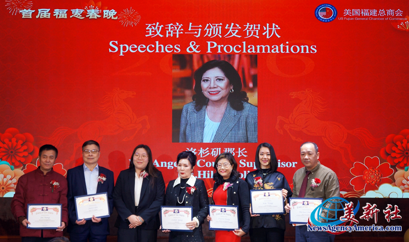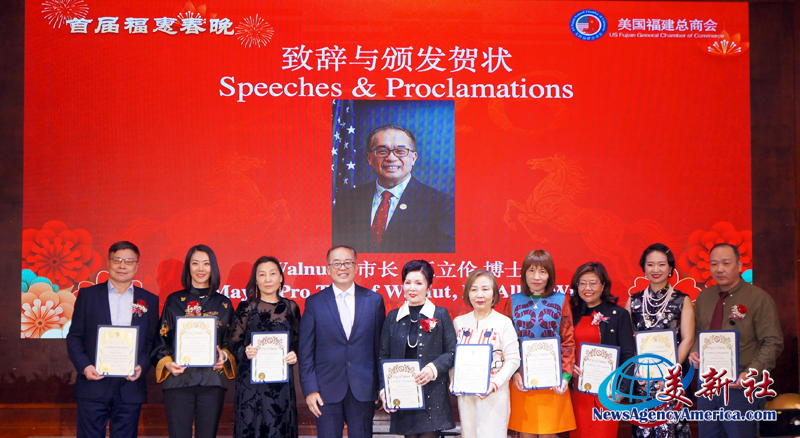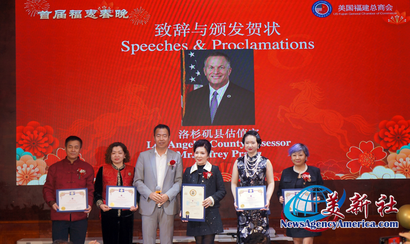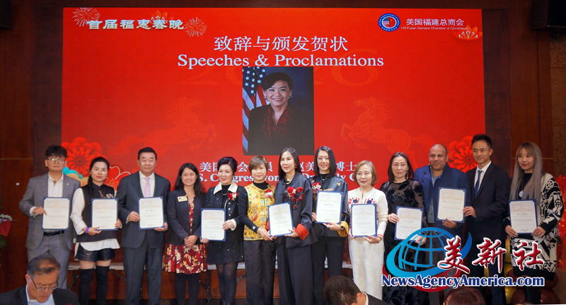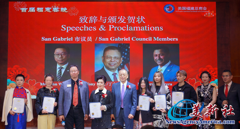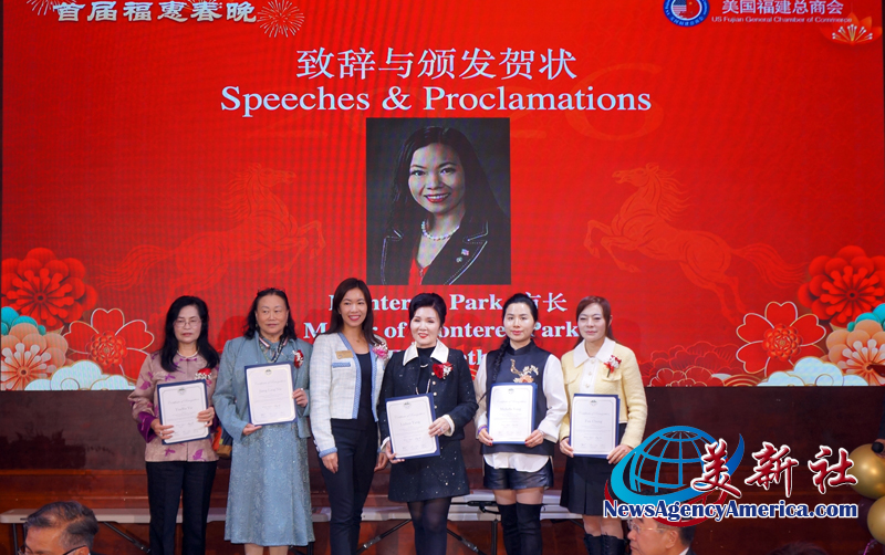 加州眾議員方樹強(Mike Fong)、蒙特利公園市市長楊安立(Elizabeth Yang)、核桃市副市長伍立倫 博士(Dr. Allen Wu)、聖蓋博市議員丁言愉(Tony Ding)和市議員吳程遠(John Wu),也加入行列,肯定和稱贊美國福建總商會在服務僑社、造福社會、繁榮經濟、促進美中民間友誼等方面發揮了積極作用,同時祝願總商會在楊麗桢會長的領導集體帶領下,百尺竿頭更進一步,會務昌隆更上一層樓。