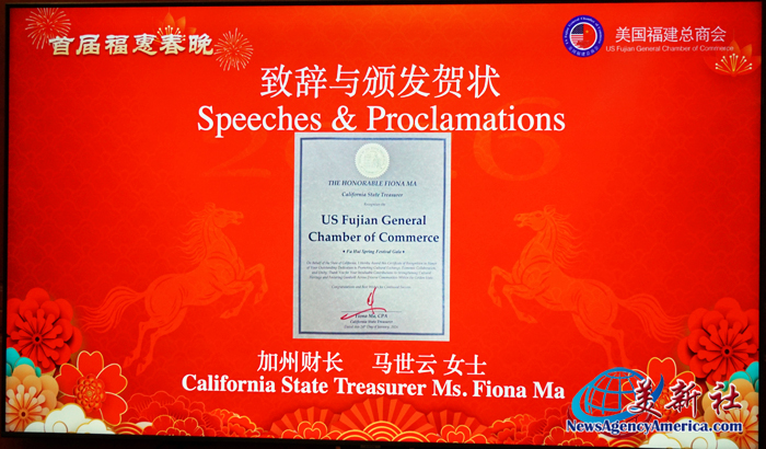 加州财政部長馬世雲(Fiona Ma)簽發賀信