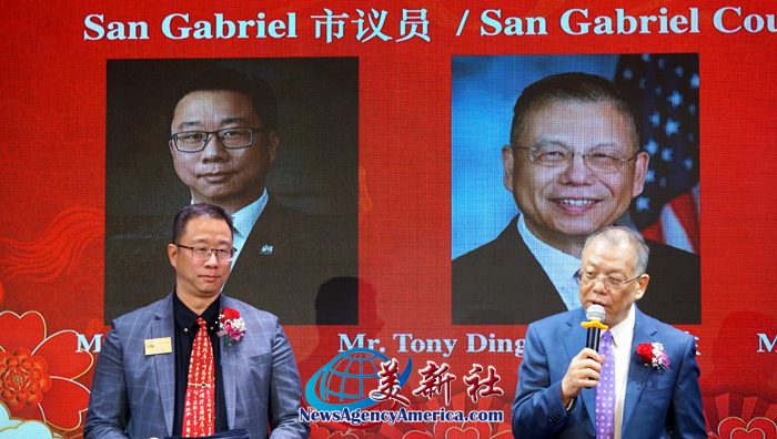 加州眾議員方樹強(Mike Fong)、蒙特利公園市市長楊安立(Elizabeth Yang)等民選官員等親臨現場道賀;加州财政部長馬世雲(Fiona Ma)發來賀信;美國國會眾議員趙美心博士(Dr. Judy Chu)、加州主計長 Malia Cohen、洛杉矶郡第一區郡長蘇麗絲(Hilda Solis)和洛杉矶郡估值官潘杰夫(Jeffrey Prang)也委派代表到場頒發賀狀;并且與南加州政、商、僑界領袖代表等近 300 位賓朋一道歡慶農歷新年,喜迎馬年新春。