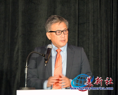 前加州財政部長江俊輝(John Chiang)於31日晚宴上做主題演講
