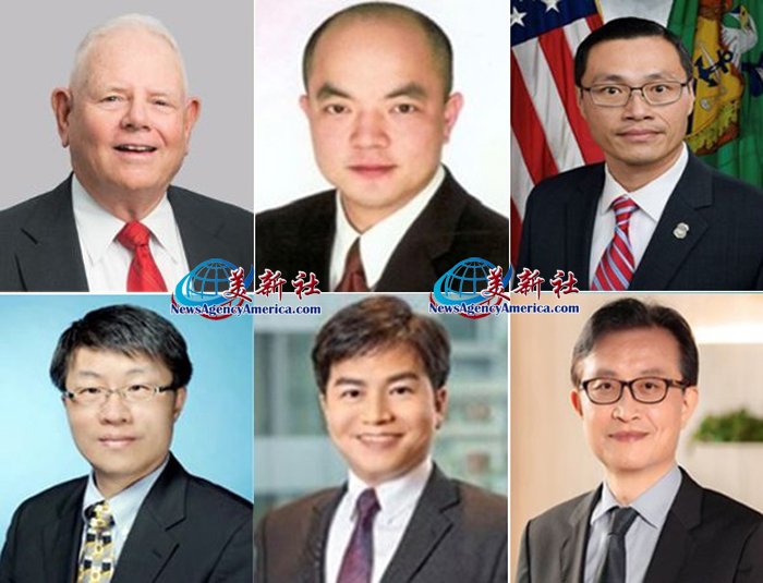 組委會主席 張青會計師(Eric Zhang,右5)和洛杉磯亞太會計師協會會長 Bella Wang(左2),向榮耀贊助商代表頒發感謝狀