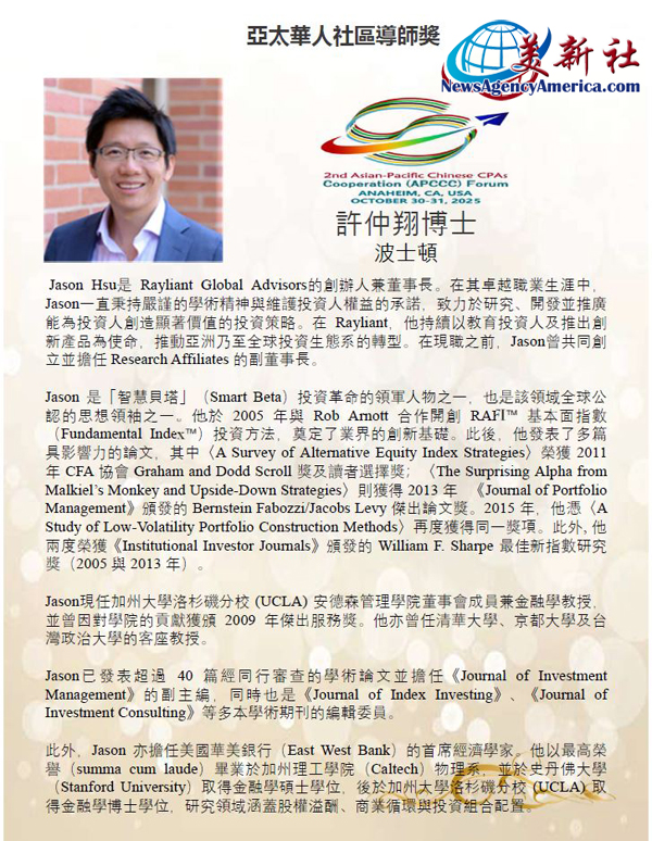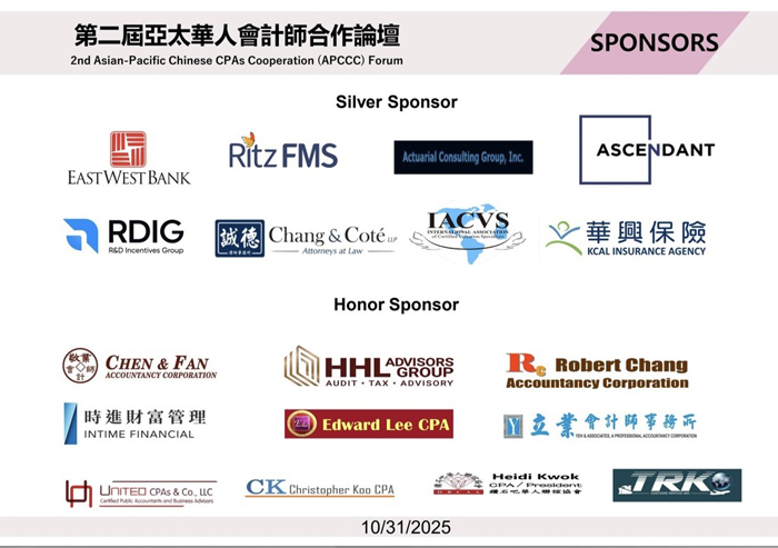 【美新社洛杉磯訊】第二屆亞太華人會計師合作論壇(APCCC)如期於10月30–