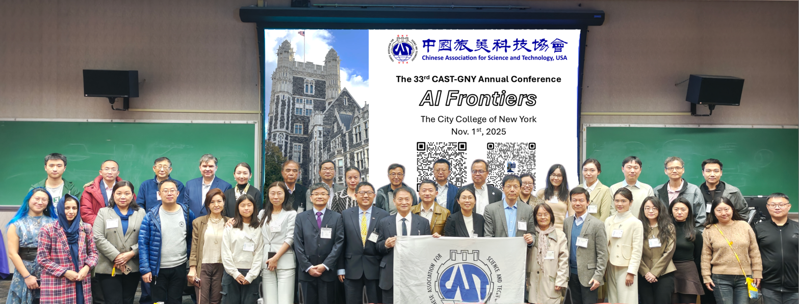 2025年11月1日,中国旅美科技协会大纽约分会(CAST-GNY)在纽约城市学院(City College of New York)隆重举办第33届年会暨人工智能前沿(AI Frontiers)论坛。本次年会以人工智能前沿创新为主题,吸引了来自中美学术界、产业界与投资领域的多位专家学者、创新创业者与青年研究者,共同探讨人工智能技术的前沿突破与多领域应用。