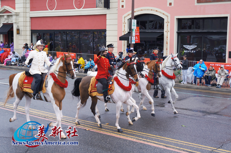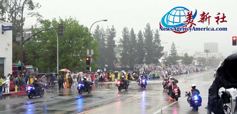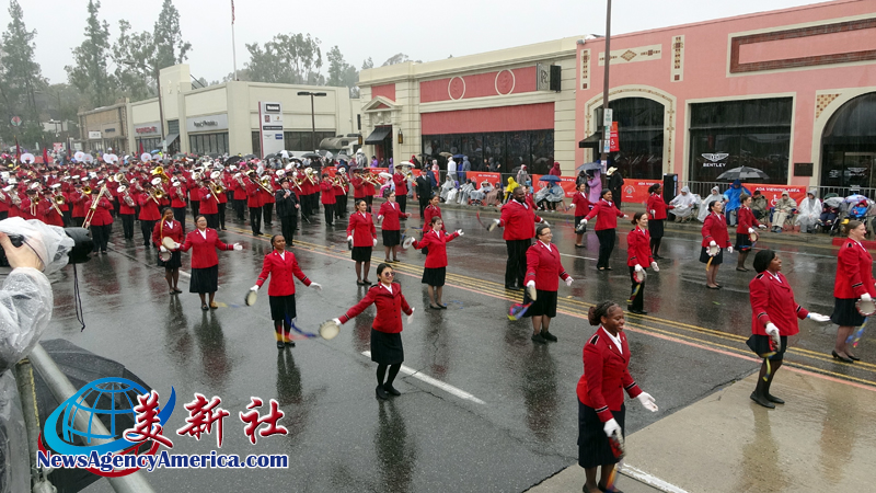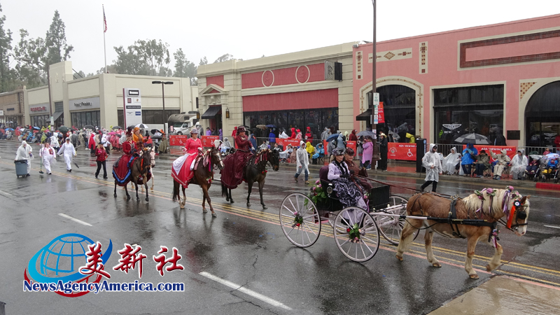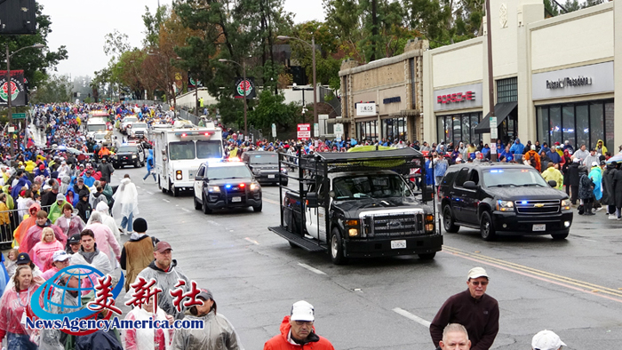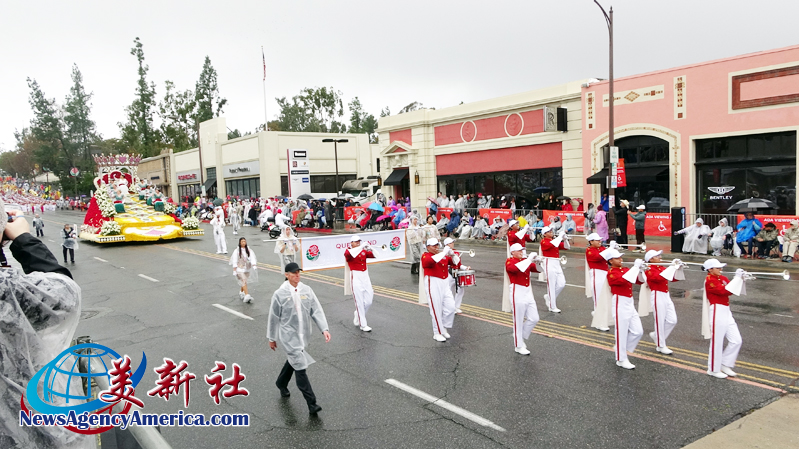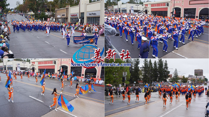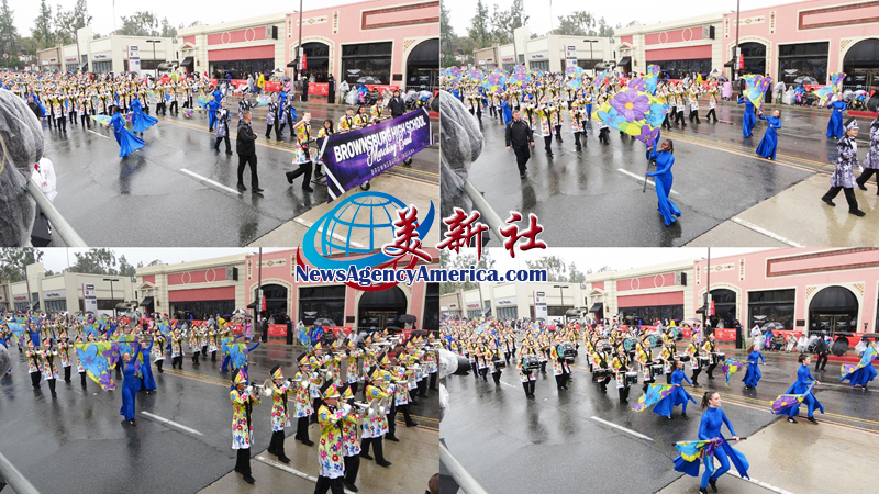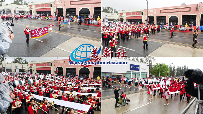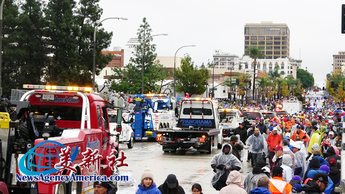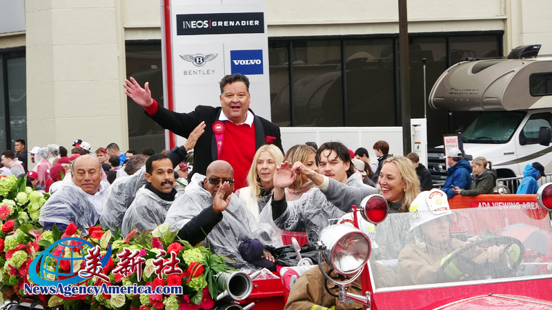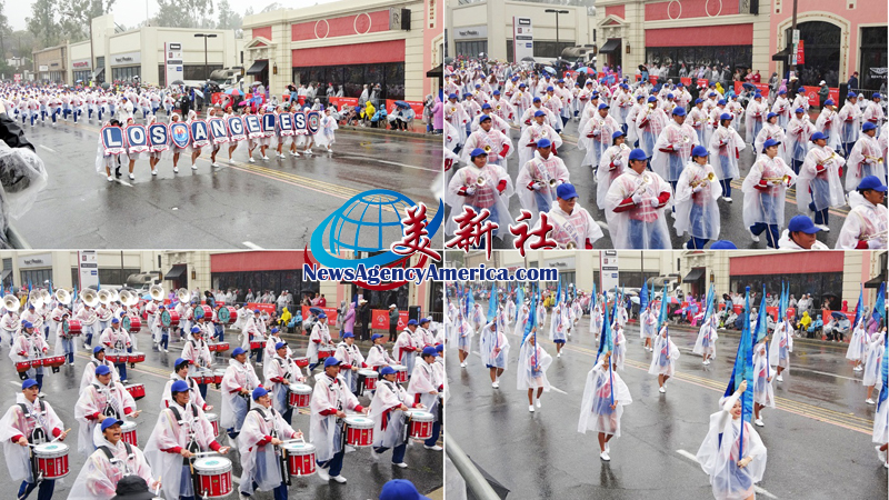 當天上午 8 時整,遊行自格林街與橘林大道交會處正式起跑,沿著科羅拉多大道一路前行。雖然國家氣象局預報整日陰雨,天空也不時降下雨水,卻絲毫澆不熄觀眾的熱情。街道兩側座無虛席,五彩繽紛的雨衣在人潮中形成壯觀畫面,『新年快樂』的歡呼聲此起彼落,為 2026 年揭開充滿希望的序幕。