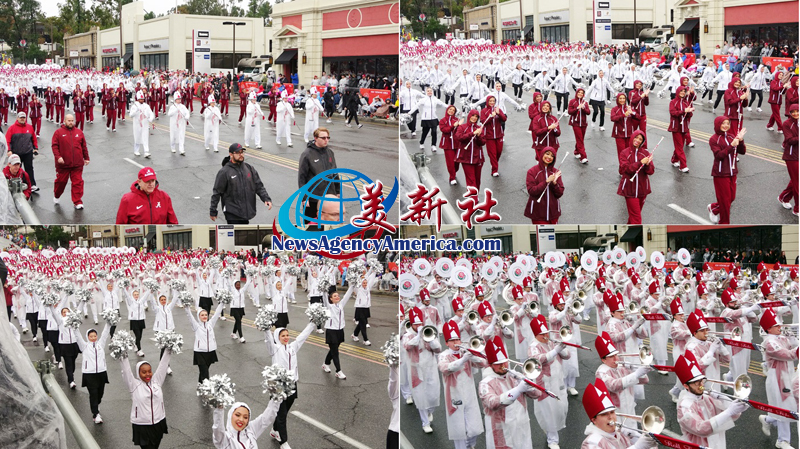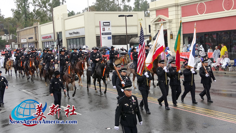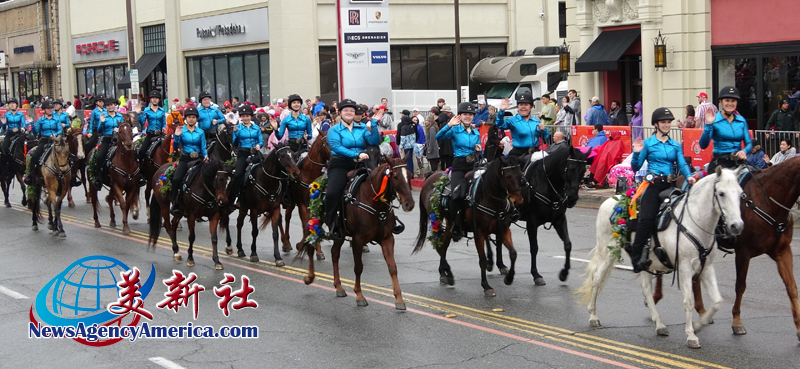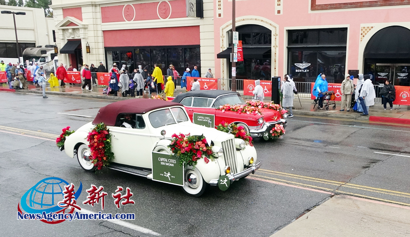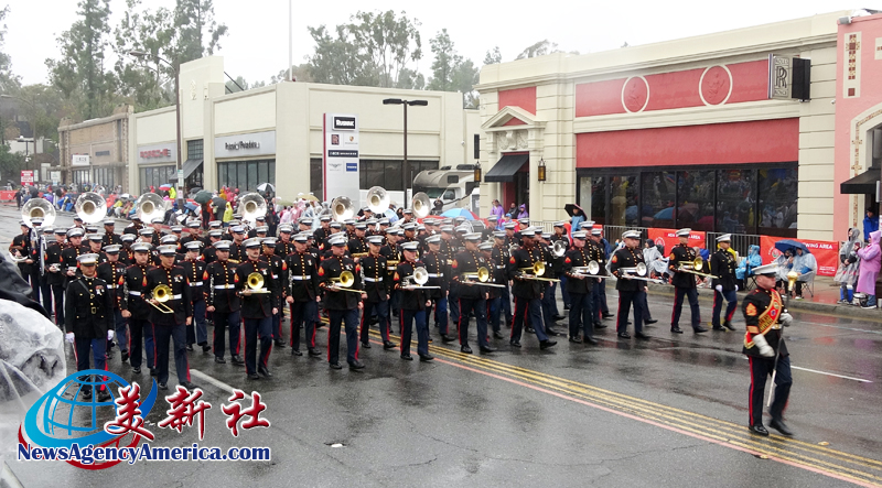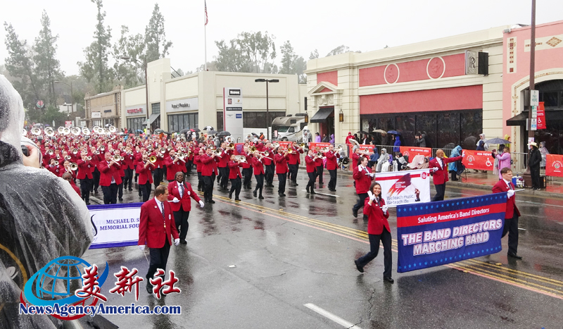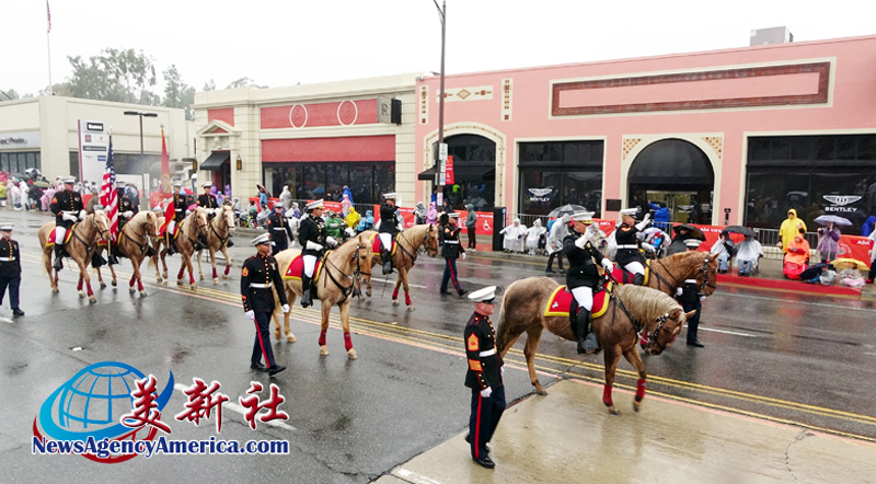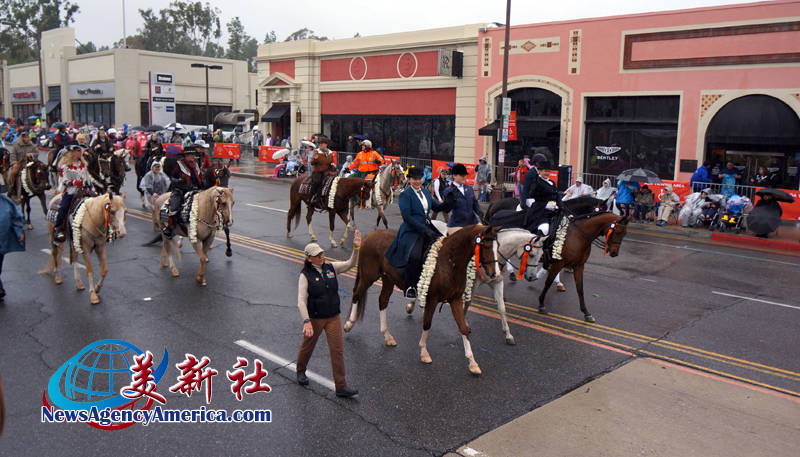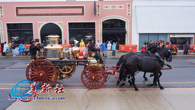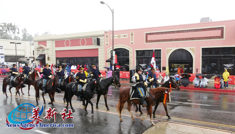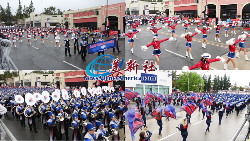 當天上午 8 時整,遊行自格林街與橘林大道交會處正式起跑,沿著科羅拉多大道一路前行。雖然國家氣象局預報整日陰雨,天空也不時降下雨水,卻絲毫澆不熄觀眾的熱情。街道兩側座無虛席,五彩繽紛的雨衣在人潮中形成壯觀畫面,『新年快樂』的歡呼聲此起彼落,為 2026 年揭開充滿希望的序幕。