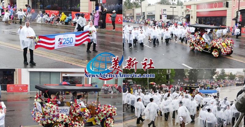 【美新社訊】2026年元旦清晨,第 137 屆玫瑰花車大遊行(Rose Parade)在美國加州帕薩迪納如期登場,數十萬名民眾冒雨迎接新年,在花香、音樂與掌聲交織中,共同見證這場跨越百年的新年盛典。