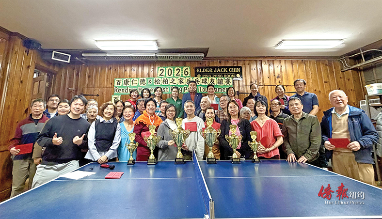 【侨报记者崔国萁1月22日纽约报道】由松柏之家社区服务中心主办、百康仁德医疗集团支持的“2026松柏之家乒乓球友谊赛”于22日举行。经过激烈角逐,最终李仕雄、何志伟、陈日轩夺得男子组前三名,伍小欢、包惠芬和陈保儿则摘取了女子组冠亚季军。