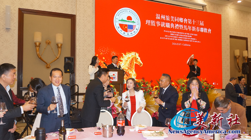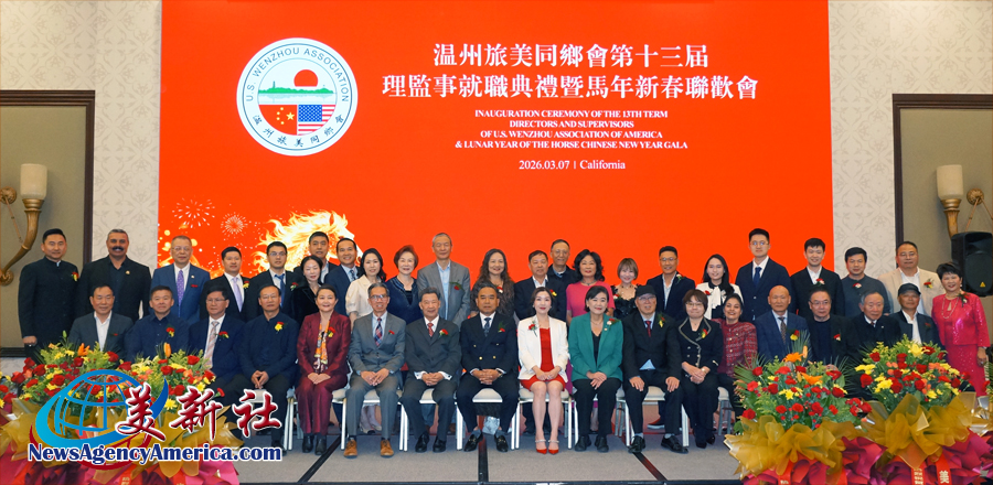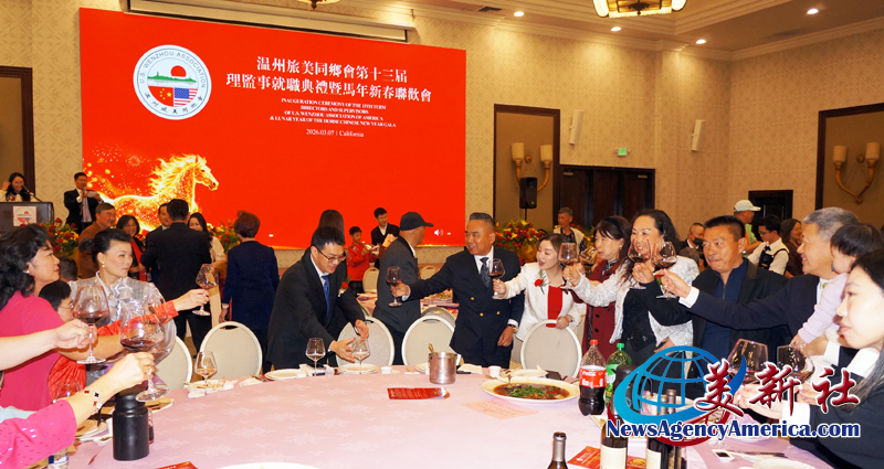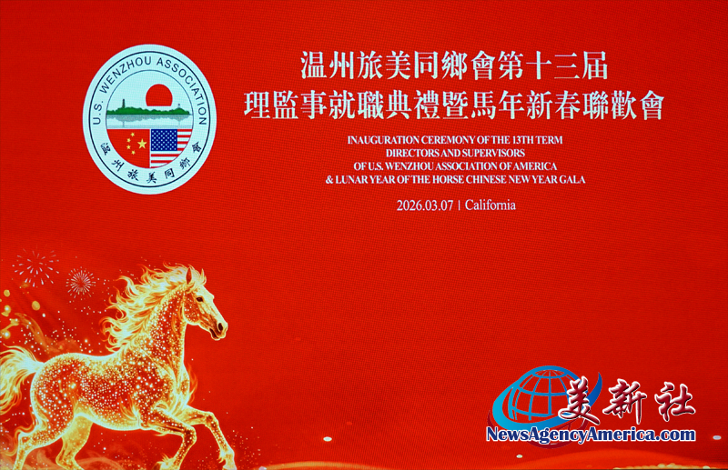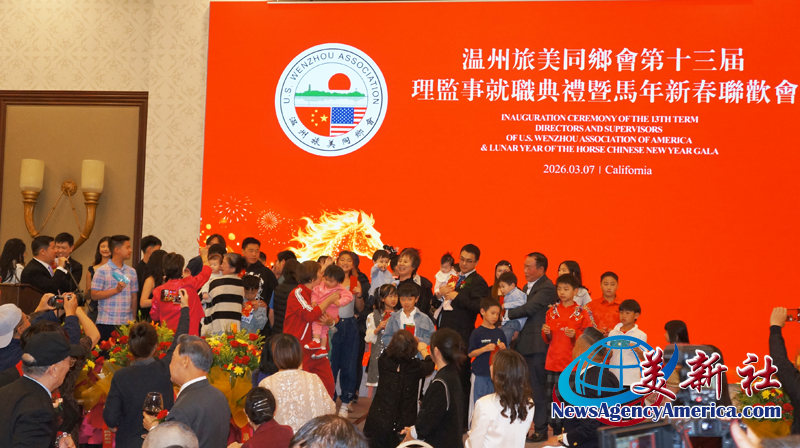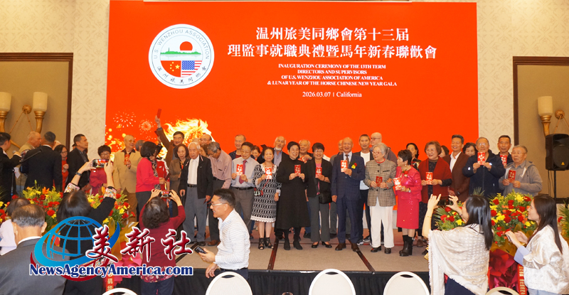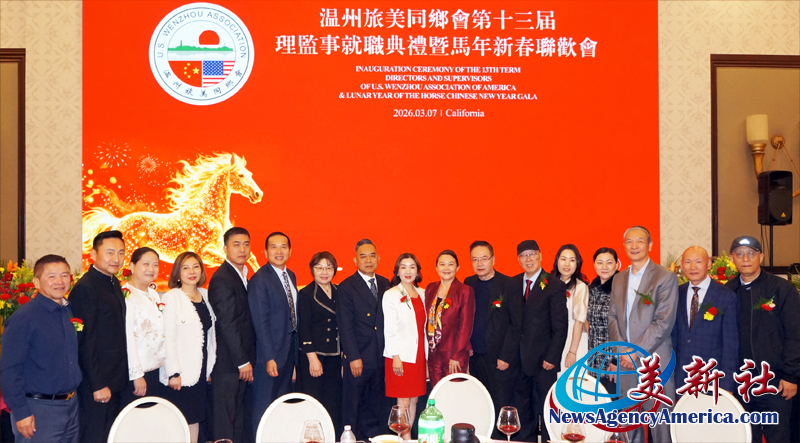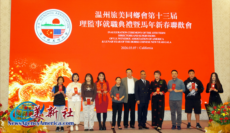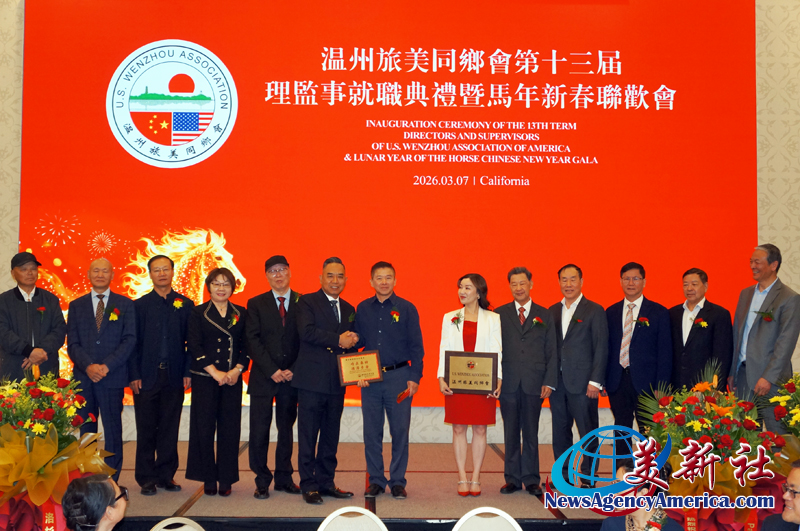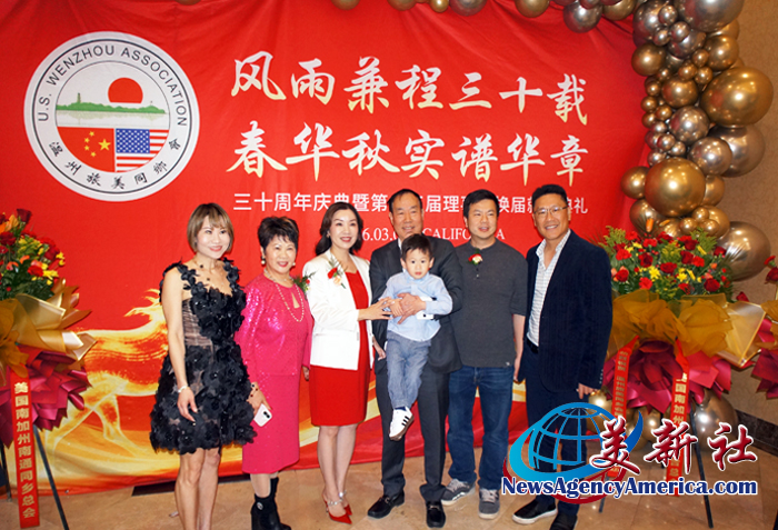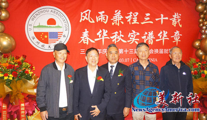 【美新社洛杉矶訊】3月7日晚間,溫州旅美同鄉會三十周年慶、第十三屆理監事就職典禮暨馬年新春聯歡會于洛杉矶聖蓋博盛大舉行。