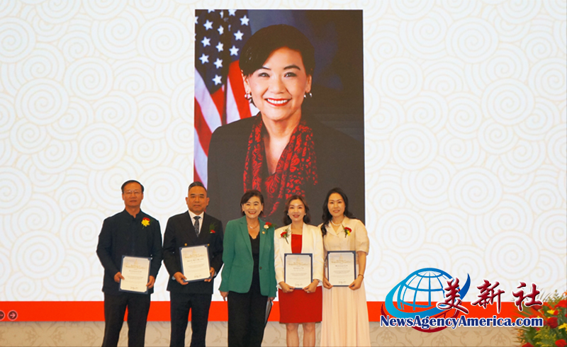 國會眾議員趙美心博士(Dr.Judy Chu)、加州眾議員方樹強(Mike Fong)、聖蓋博市議員丁言愉(Tony Ding)等美國民選官員,與中國駐洛杉矶總領館領僑處主任王琦領事,以及近 500 位南加州政、商、僑界賓朋歡聚一堂,共同見證和慶祝第十二屆會長黃少敏交棒第十三屆會長葉茹女士。