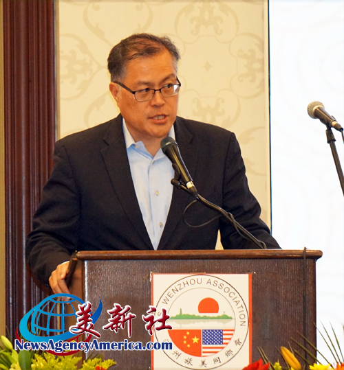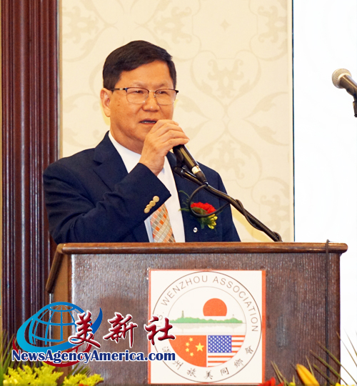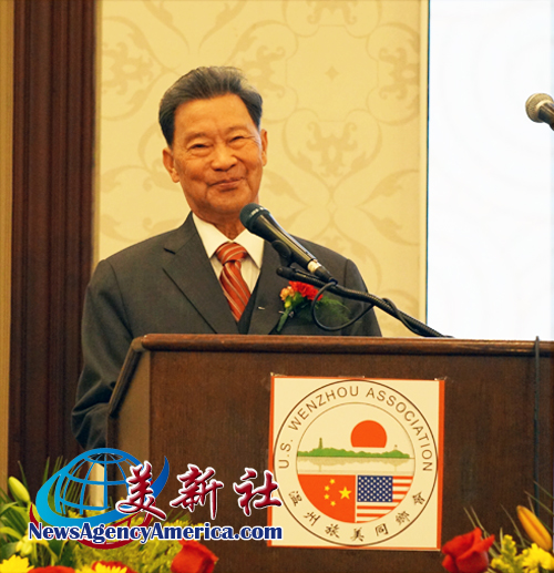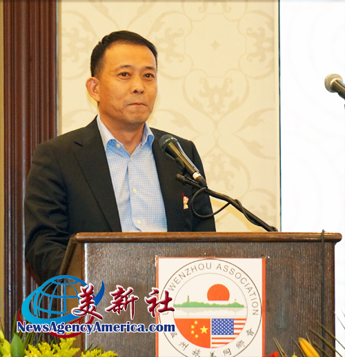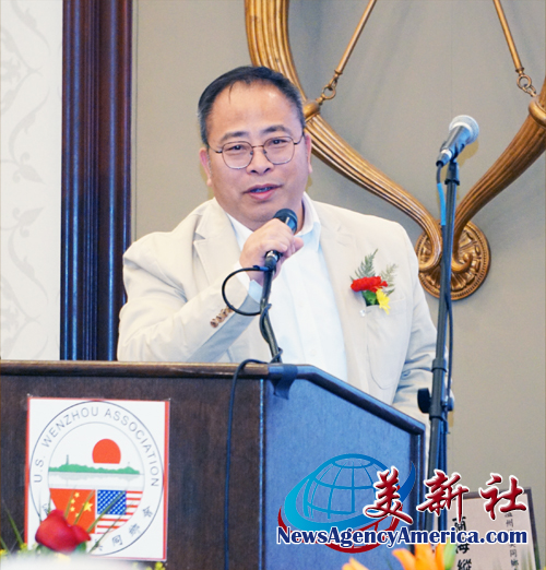 溫州旅美同鄉會王儉美榮譽會長在致辭中,回顧華人來美和溫州人扎根美國的奮斗故事。他指出,“170多年以前,華人就到加州挖金礦,修鐵路。踩着他們的足迹,我們來到美國創業,溫州人就是生力軍之一。”