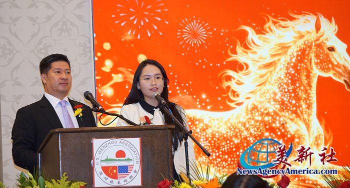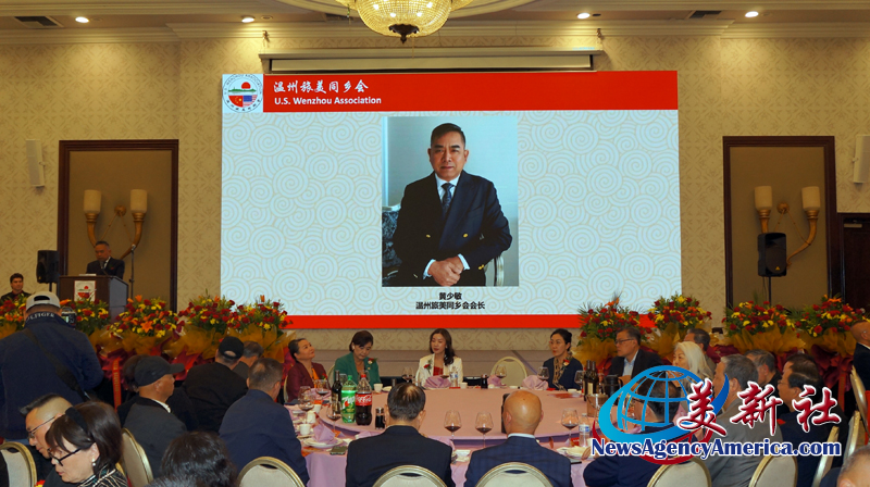 黃少敏會長也寄語第十三屆葉茹會長,以三十周年為新的起點,攜手同行,共創未來;同時祝願溫州旅美同鄉會薪火相傳,基業長青;也祝願各位鄉親事業順利、家庭幸福,馬到成功,萬事順遂,龍馬精神,步步高升。