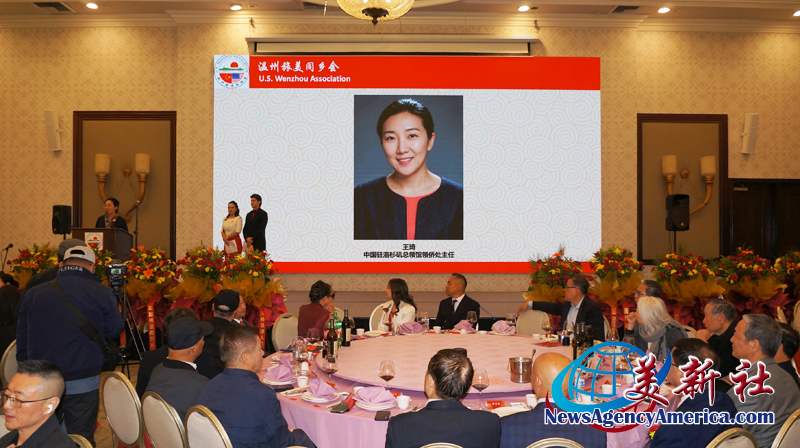 中國駐洛杉矶總領館領僑處主任王琦領事,代表總領館向溫州旅美同鄉會三十周年慶,第十三屆理監事就職典禮,《三十周年年鑒》的成功發行,表達祝賀與祝福。