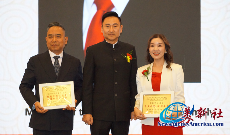 溫州旅美同鄉會董事長及榮譽會長潘松林也向第十二屆會長黃少敏頒發了感謝獎牌。