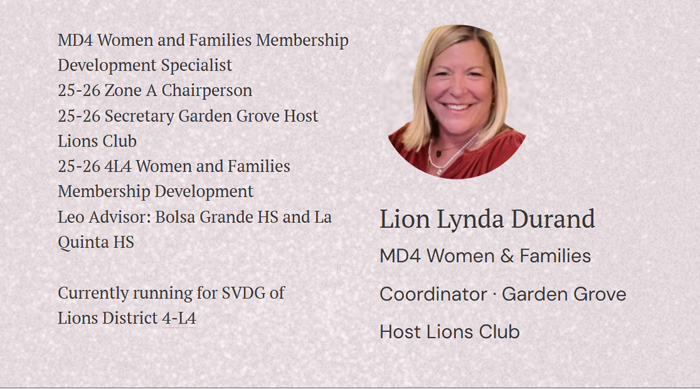 Lion Lynda Durand – MD4 Women and Families Coordinator