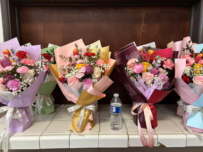 活動現場也充滿溫馨氛圍,Queenie Liu 準備鮮花與蛋撻,Furong Zhang 帶來手工水餃,President Esther 與 Carol Ma 準備新鮮水果,多位獅友與志工帶來點心與甜點,