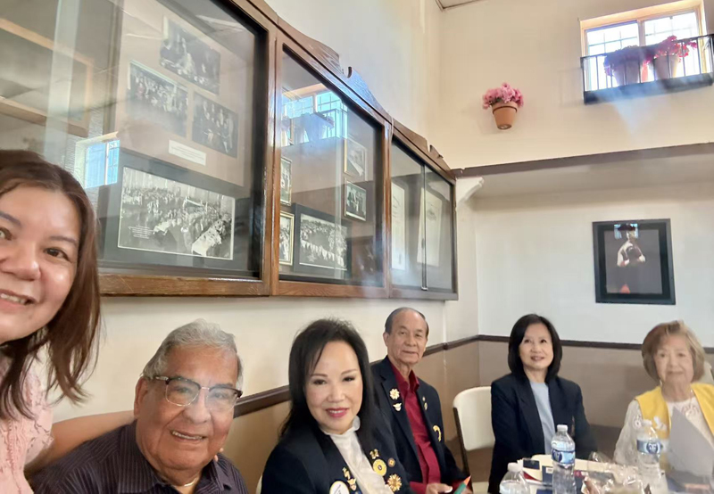 (左起)洛杉磯恩典獅子會前會長 Queenie Liu、PDG Eduardo Oviedo、GMT Nancy Chan、蒙市獅子會會長黃維剛(Anthong Wong)等