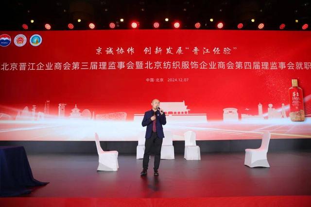 第十二届全国政协副主席、农工党中央原常务副主席刘晓峰在致辞中表示, 晋江是个诞生奇迹的城市。2002年,习近平同志在担任福建省长就总结提出“晋江经验”,2023年,中共中央、国务院发布《关于促进民营经济发展壮大的意见》,提出“不断创新和发展‘晋江经验’”,将“晋江经验”上升到引领全国民营经济发展的高度。北京晋江企业商会、北京纺织服饰企业商会正是以“晋江经验”作为商会发展的重要行动指南,坚定信心、应对挑战,乘势而上,引导会员企业认真践行新发展理念,聚焦主业、做精实业,加强自主创新,在建设一流商会中闯出了自己的路子。