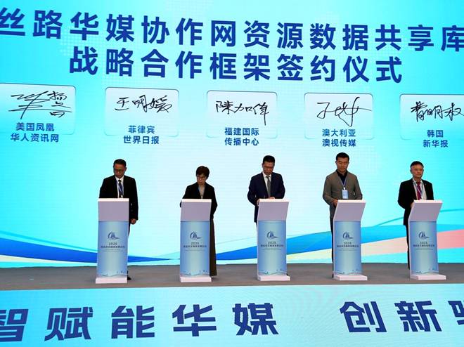 本次论坛以“数智赋能华媒 创新驱动变革”为主题,来自马来西亚、菲律宾、美国、阿根廷、意大利、加纳等27个国家和地区的56家海外华媒代表参加研讨。开幕式上,韩国新华报、澳大利亚澳视传媒等4家海外媒体与福建国际传播中心签署共建“丝路华媒协作网资源数据共享库”战略合作框架协议。