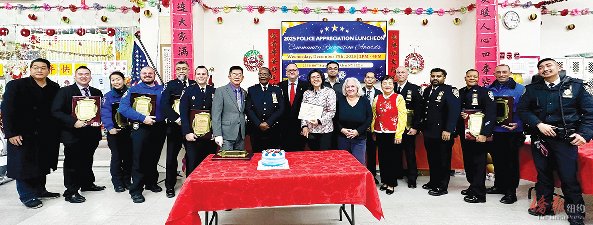 【侨报记者崔国萁12月17日纽约报道】由华人健康协会携手本地社区巡逻队(Local Community Patrol)共同主办的2025感谢警察午餐会,17日在布碌仑宾臣墟区举行,来自警界不同战线上的10名警官获颁奖,以感谢他们在保护纽约市安全与社区治安上所做出的贡献。