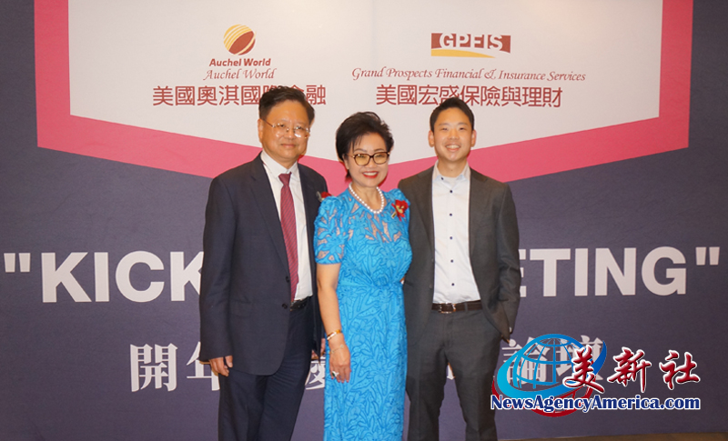 美國奧淇國際金融/美國宏盛保險與理财的總裁兼CEO 黃海蒂女士(中)與董事長 Morris Chen(左)及家人
