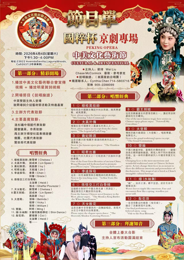【洛杉磯訊】由中美文化藝術聯合會主辦的2026『國粹杯』
