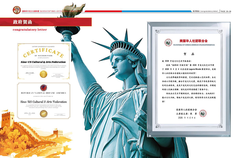 張明主席同時強調,中美文化藝術聯合會同時關注青少年的文化教育與藝術培養。文化的未來需要青少年傳承,希望在下一代,通過打造『中美文化藝術節』,『青少年藝術團』,文化交流等多元化平台,希望激勵更多青少年和年輕一代,參與到文化傳承與創新之中,讓中華文化在世界舞台上煥發新的生命力。未來,中美文化藝術聯合會將繼續秉持“開放、包容”的共同發展理念,匯聚全球藝術資源,推動多層次、多領域、多文化的交流與合作。同時,為促進中美民間友好,增進人類文明貢獻力量。